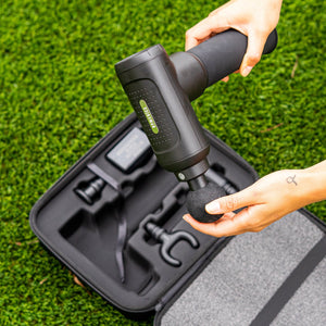 WHAT’S IN THE BOX: (1) Homedics Sports Massage Gun, (6) Interchangeable Attachments, (1) Quick Start Guide, (1) Mains Charger (1) Storage Case, (1) 1-yr Warranty.