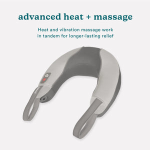 - Soothing Heat: Turn on gentle heat therapy and feel warmth radiate throughout your upper back and neck; warmth helps melt away the day’s stress; penetrates for an enhanced massage experience
